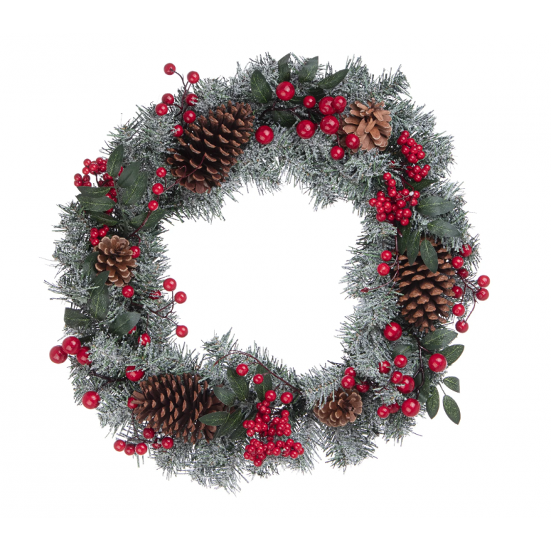Ghirlanda Tonda Natalizia Caryn Innevata Con Bacche Color Rosso D 55 cm