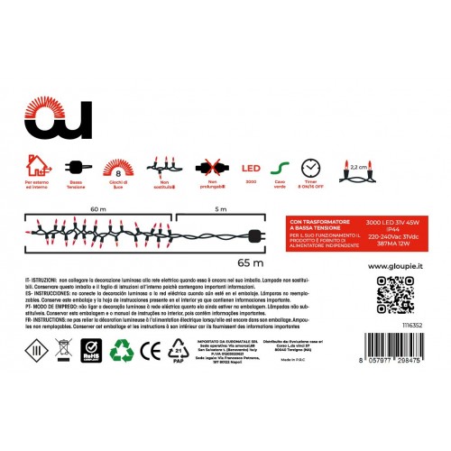Le Luci Compact, Alimentate Da Un Trasformatore A Bassa Tensione 220-240Vac 31Vdc 387Ma 12W, Offrono 3000 Led Multicolore (31V 45W) Per Creare Un'Atmosfera Magica E Accogliente. Grazie Alla Funzione Memoria, Potrai Ripristinare Facilmente L'Ultimo Effetto Luminoso Utilizzato. Inoltre, Il Timer Integrato (8 Ore On/16 Ore Off) Ti Permetterà Di Impostare L'Accensione E Lo Spegnimento Automatico, Senza Dover Pensare A Nulla