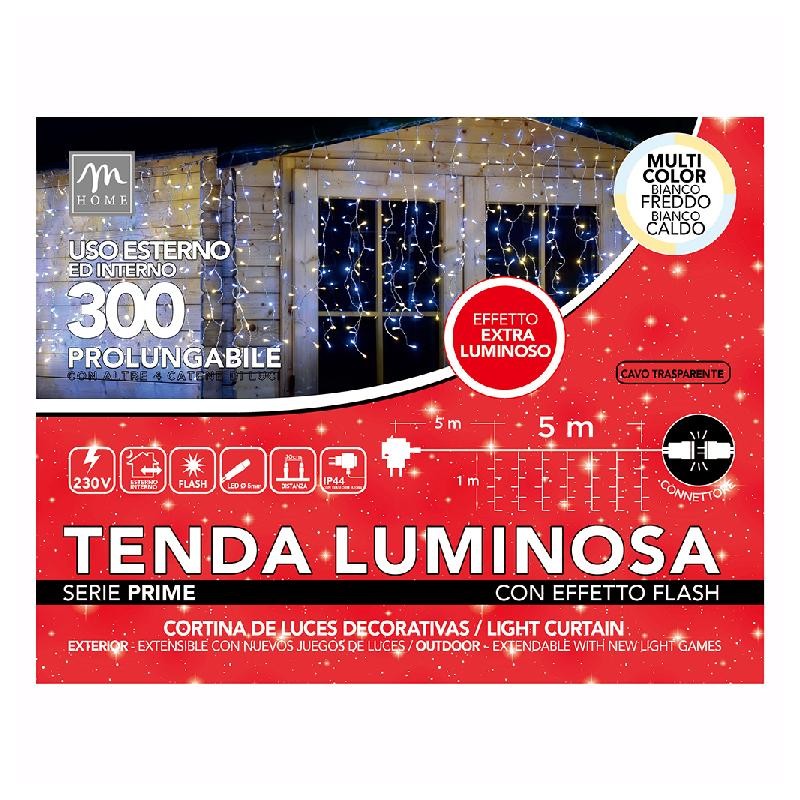 Tenda luminosa 300 led bianco caldo/freddo 5x1mt