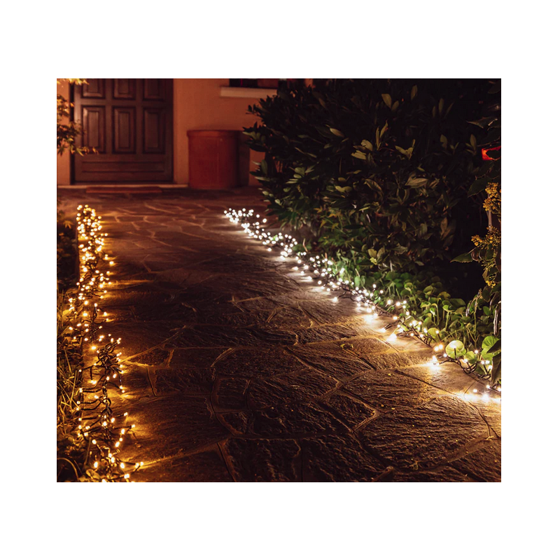 Una stringa di LED controllabile tramite App, perfetta per le decorazioni di casa e outdoor. Twinkly Gold Edition trasforma il calore e l'eleganza delle tradizionali luci bianche creando una sorgente luminosa con tre colori in uno: Amber, Cool White e Bianco caldo.