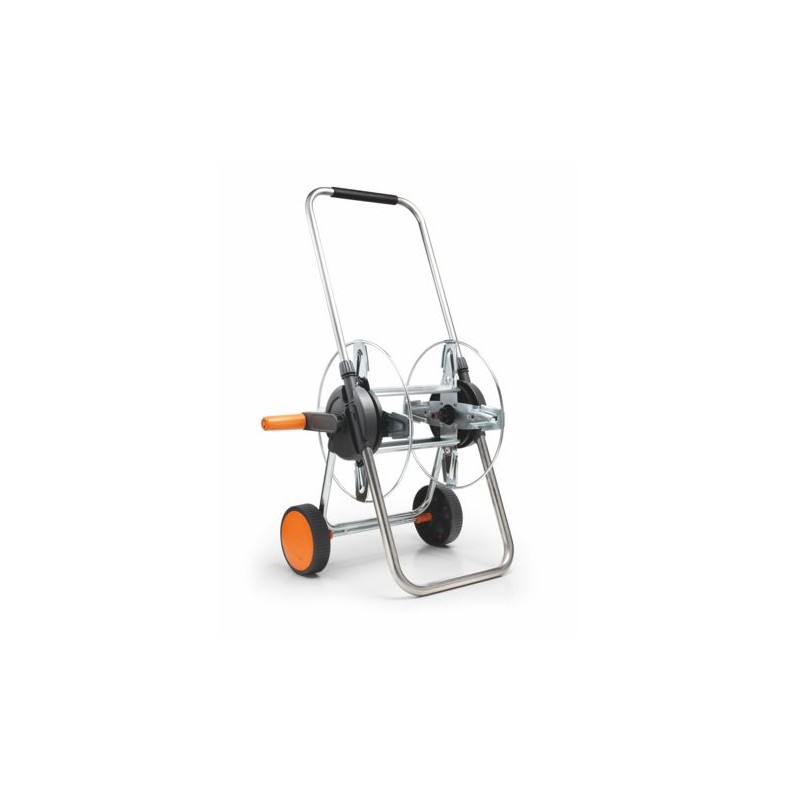 tecnico e lineare: questo è il carattere distintivo del carrello avvolgitubo in metallo con ruote.