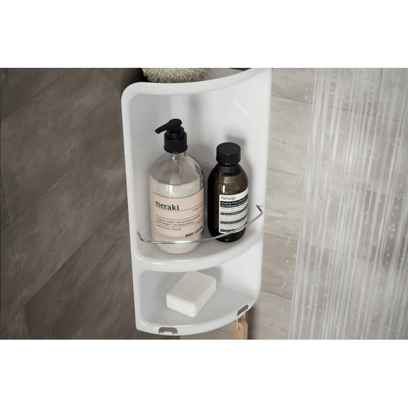 Angoliera per doccia 2 ripiani; In polipropilene resistente alle alte temperature e all'acqua.