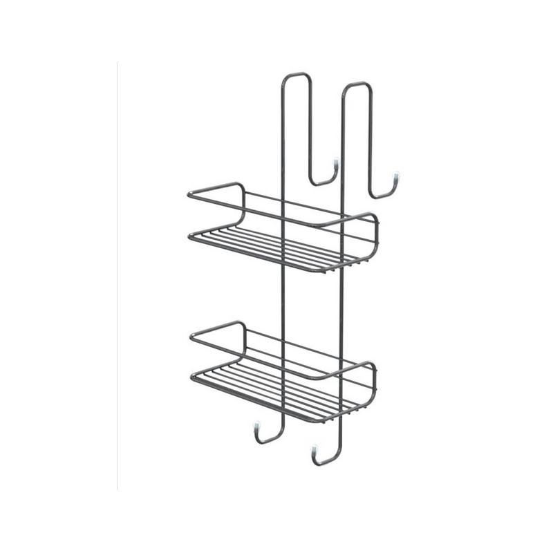 Portasapone a due ripiani in acciaio cromato, per arredo box doccia o vasca.