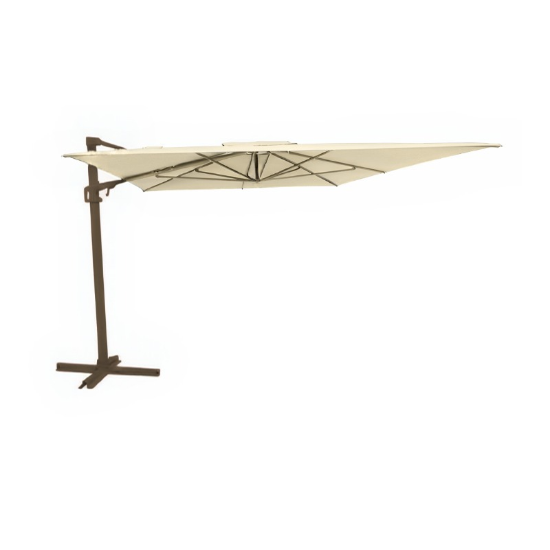 Design elegante e funzionalità avanzata: La struttura in alluminio verniciato a polvere epossidica di colore marrone caffè conferisce all'ombrellone un aspetto elegante e moderno. Il palo decentrato permette di posizionare i mobili da giardino con maggiore flessibilità. Le 8 stecche da 14x23 mm con fine stecca ed elastici interni garantiscono robustezza e stabilità.