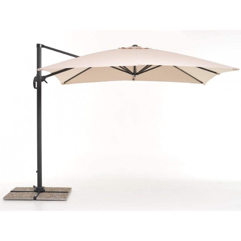 ombrellone verso 3x3 ecrù mod. m0452descrizione:ombrellone retrattile 3x3 metri struttura in alluminio verniciato a polvere epossidica di colore antracite, palo decentrato 77x53 mm, 8 stecche 12x23 mm, telo in poliestere con rivestimento in pvc 250 g/m2 di colore ecrù, parasole con inclinazione multi-posizioni, sistema di apertura retrattile con manovella, sistema di rotazione a 360° azionabile con pedale, base a croce (piastrelle non incluse). prodotto easy assembledim.: 300x300x270 cm