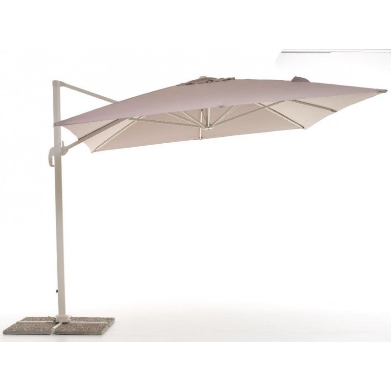 Elegante e raffinato ombrellone con palo decentrato e braccio retrattile. Parasole con inclinazione regolabile. Il prodotto ideale per i tuoi spazi esterni come giardino oppure terrazzo. Struttura in alluminio verniciato a polvere epossidica di colore bianco. Telo in tessuto.
