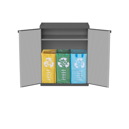 GLOUPIE Armadietto Per Raccolta Differenziata Con 2 Ante E 3 Sacchetti Joker, L 68 x P 40 x H 85 Cm