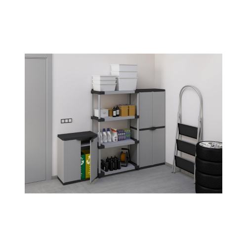 Prodotto Made In Italy Realizzato Con Materiali Di Qualità, L'Armadietto Joker Garantisce Una Resistenza Eccezionale Agli Urti, Ai Graffi E Alle Intemperie. La Base, La Copertura Superiore, Le Maniglie, I Montanti E I Pannelli Posteriori Sono In Resina Di Polipropilene, Un Materiale Noto Per La Sua Robustezza E La Sua Capacità Di Sopportare Carichi Pesanti. Gli Altri Pannelli E I Ripiani Sono Invece In Resina Di Pvc, Che Offre Flessibilità E Resistenza All'Umidità