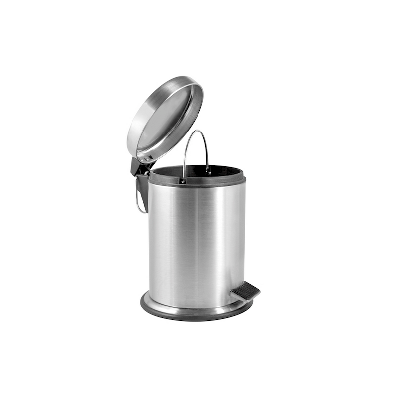 Pattumiera con pedale in acciaio satinato 3 L La pattumiera è dotata di coperchio e di un pedale per l'apertura.