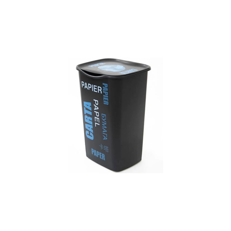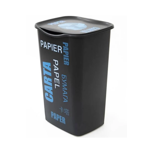 Pratica pattumiera per raccolta differenziata, grande capacità di 50 lt, strizza un occhio anche alla parte estetica, poiché su tutta la superficie è presente l'indicazione carta, in svariate lingue internazionali, ideale per chi è alla ricerca di una pattumiera funzionale ma anche esteticamente gradevole e dall'estetica internazionale.