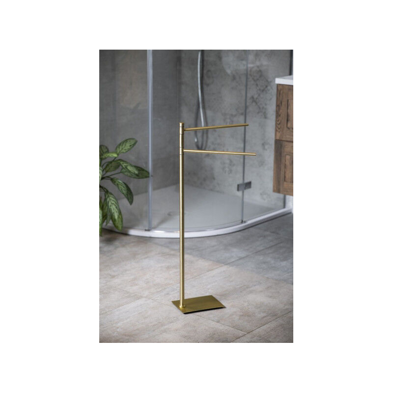 Piantana Porta Asciugamani Linea Trilly Finitura Oro Spazzolato Con 2 Bracci H 83,5 cm