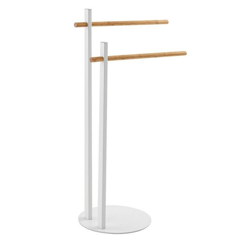 Piantana portasciugamani bagno bianca metallo bambu bracci 154103
