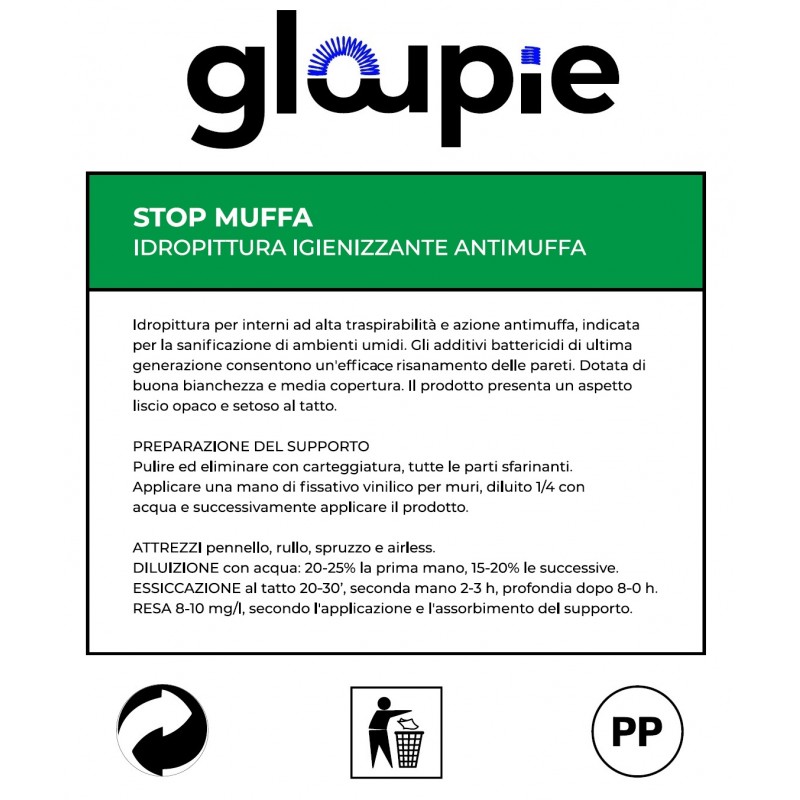 - GLOUPIE STOP MUFFA Pittura All'Acqua Antimuffa Traspirante Per Pareti Per Tutti Gli Ambienti Interni 5 Lt Bianco Made in Italy