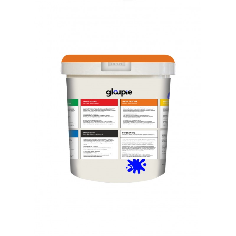 [Qualita' made in italy] : Gloupie bagni e cucine pittura all'acqua traspirante per il decoro di tutte le pareti interne di bagni e cucine, confezione da 13 litri, interamente prodotta e confezionata in italia con materiali di alta qualità
