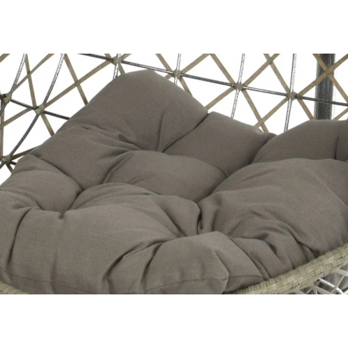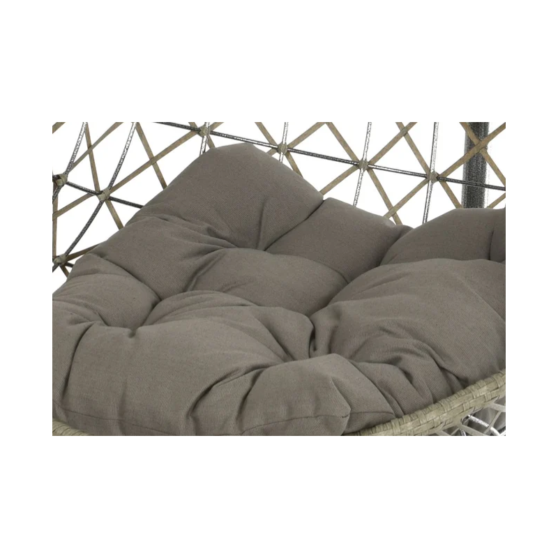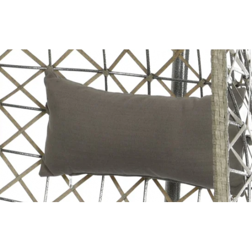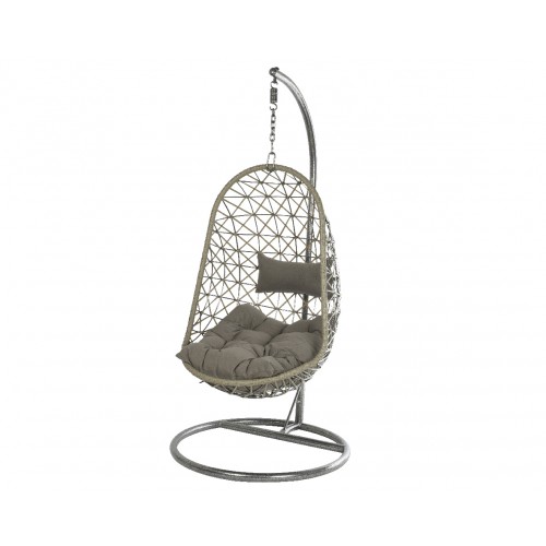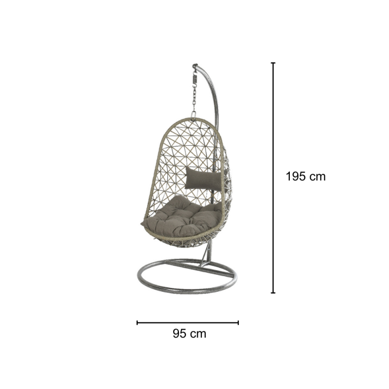 [Qualita' certificata]: Klulk poltrona amaca a dondolo sospesa da esterno per giardini, terrazze, patios, balconate linea kos con struttura in acciaio tubolare cromato verniciato a polvere epossidica e guscio in poli-vimini resistente ai raggi uv, diametro 95 cm x altezza 195 cm, completa di seduta e poggiatesta imbottito in poliestere grigio, portata massima 120 kg