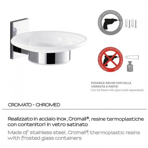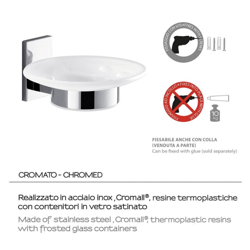 - Portasapone A Muro In Acciaio Inox Cromato E Vetro Linea Maine Con Fissaggio Tramite Viti