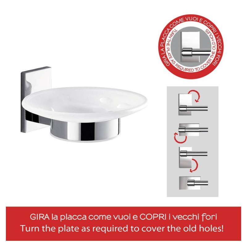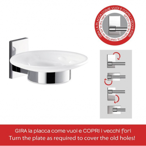 Un dettaglio intelligente: la placca di fissaggio del portasapone Maine è reversibile. Questo significa che puoi ruotarla a tuo piacimento in modo da nascondere le forature dei tasselli, per un risultato estetico ancora più impeccabile.