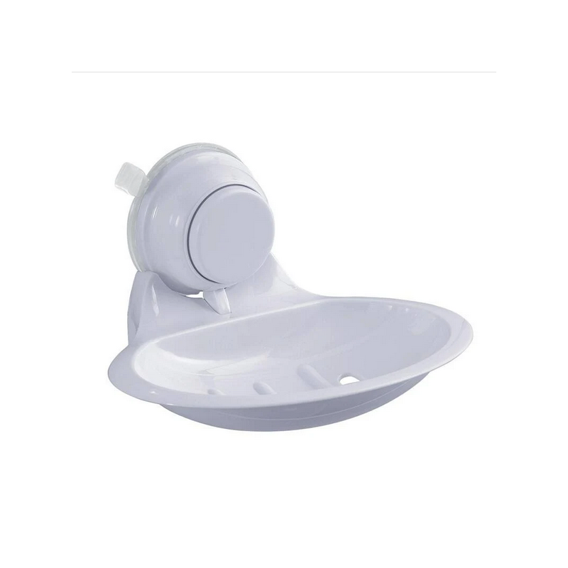 Porta sapone con installazione a parete tramite ventosa. I materiali utilizzati per la produzione sono le resine termoplastiche con una finitura bianca.