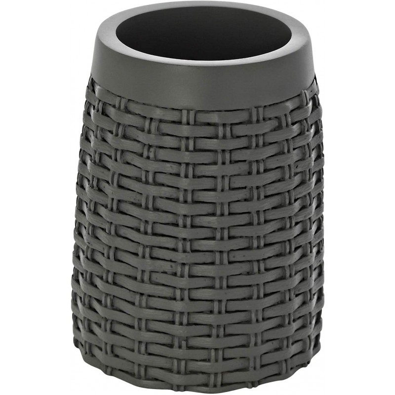 portaspazzolini d'appoggio in resina grigio dal design moderno con effetto rattan.