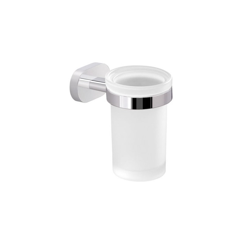 portaspazzolino portaspazzolini bagno da muro parete materiale cromall / acciaio inox con contenitore in vetro sabbiato colore cromo lucido
