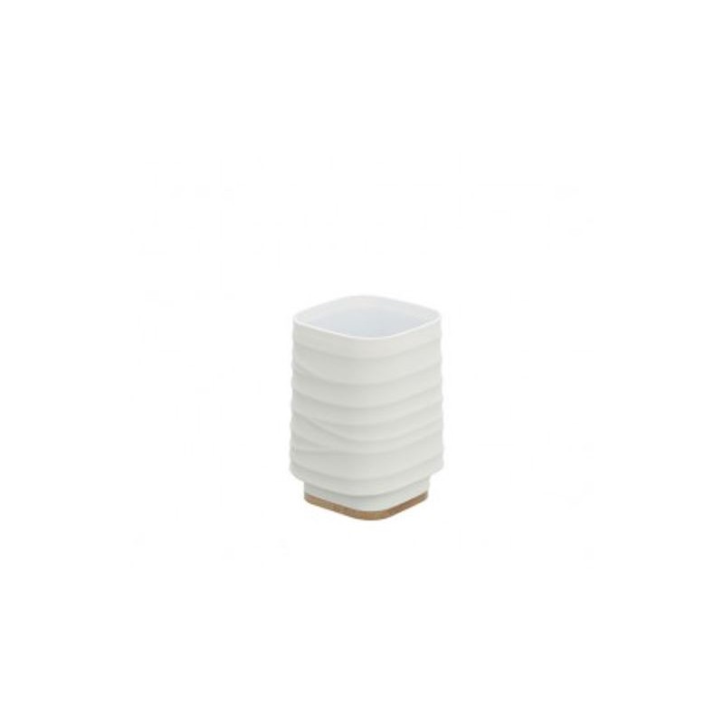 Linea Alabama: Portaspazzolino in plastica abs bianco e bamboo.