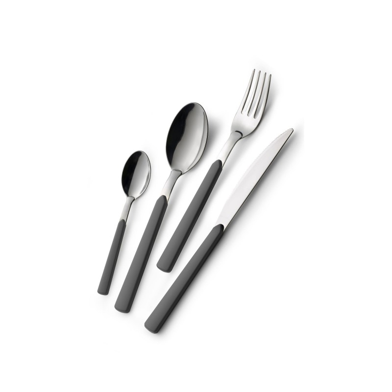 - GLOUPIE Set 24 Posate Loft Grigio Per 6 Persone in Acciaio Inox e Manico In ABS Made In Italy Lavabili In Lavastoviglie