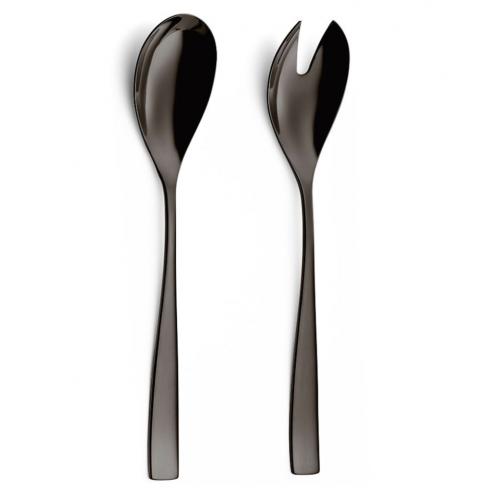 Coppia Cucchiai Per Insalata In Acciaio Inox 18/10 Aisi 304 Nero Lucido Spessore 4 mm Linea Etoile Lungo 26 cm