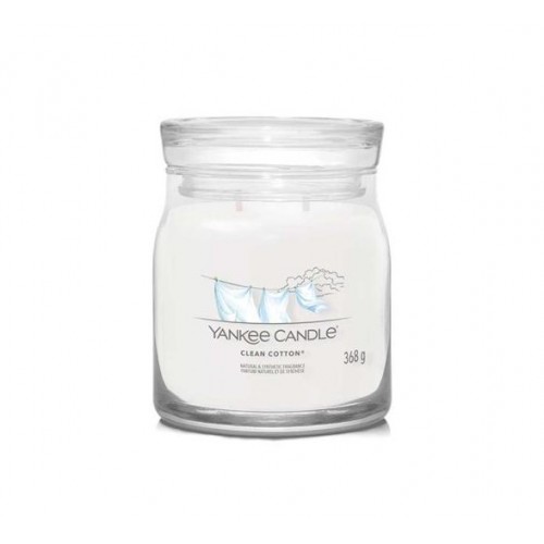 Yankee Candle Candela Giara Media Clean Cotton, è una fragranza Fresca e Pulita. Una fragranza che evoca il profumo del cotone asciugato al sole, ispirata a note verdi, fiori bianchi, con un tocco di limone.