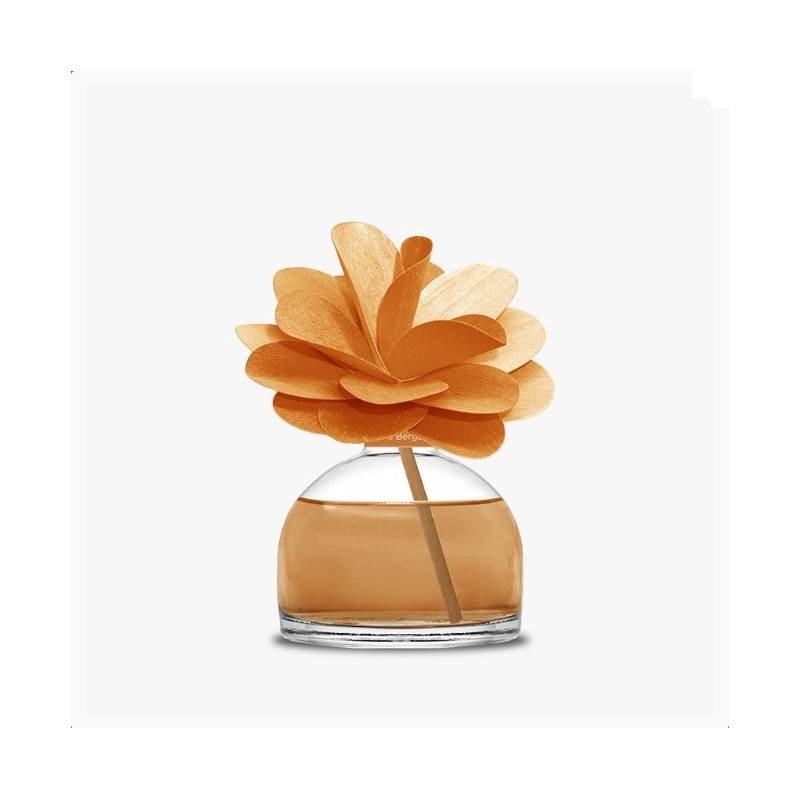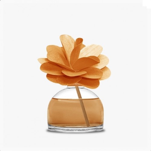 Profumatore d'ambiente in bottiglia di vetro con diffusore a forma di fiore in legno di betulla realizzato a mano. CEDRO E BERGAMOTTO La fragranza racchiude la calda luce e la vitale energia degli agrumi. Il sentore di buccia d’arancia e mandarino avvolge come il sole di settembre che scaldal’anima. Dimensioni Altezza 16,5 cm Diametro 9,2 cm Diametro fiore 11 cm