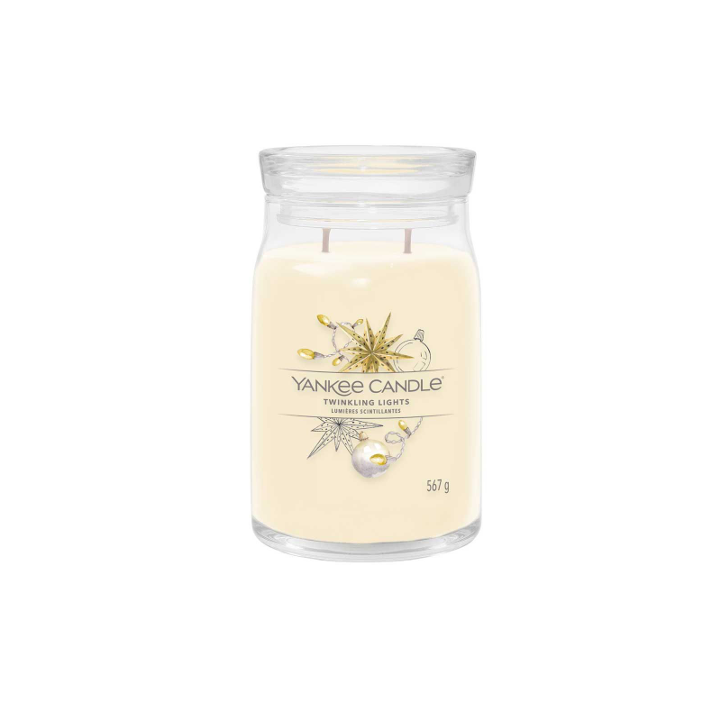 Con la Candela Twinking Lights di Yankee Candle, trasformerai la tua casa in un luogo di profumazione piacevole e duratura con una miscela festiva di note che si ispirano alla mandorla, al gelsomino e all'ambra