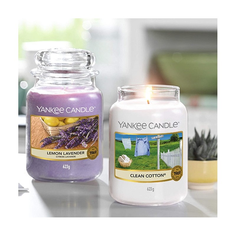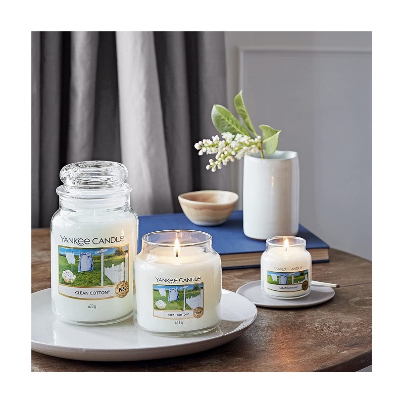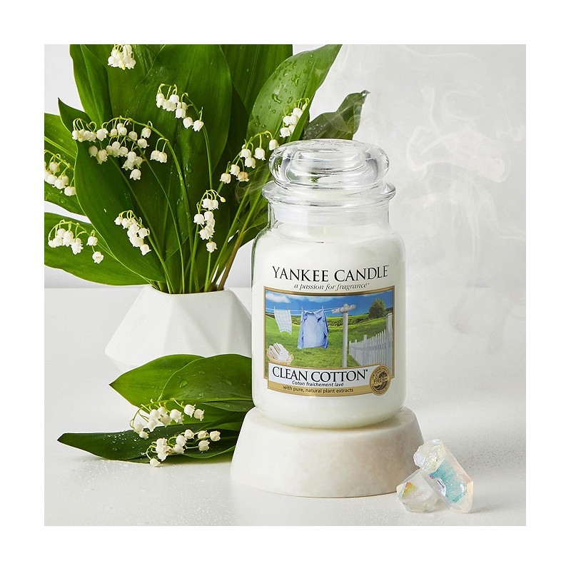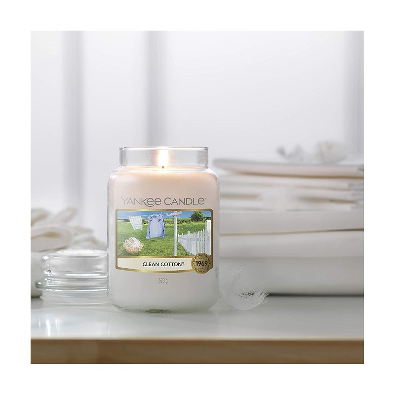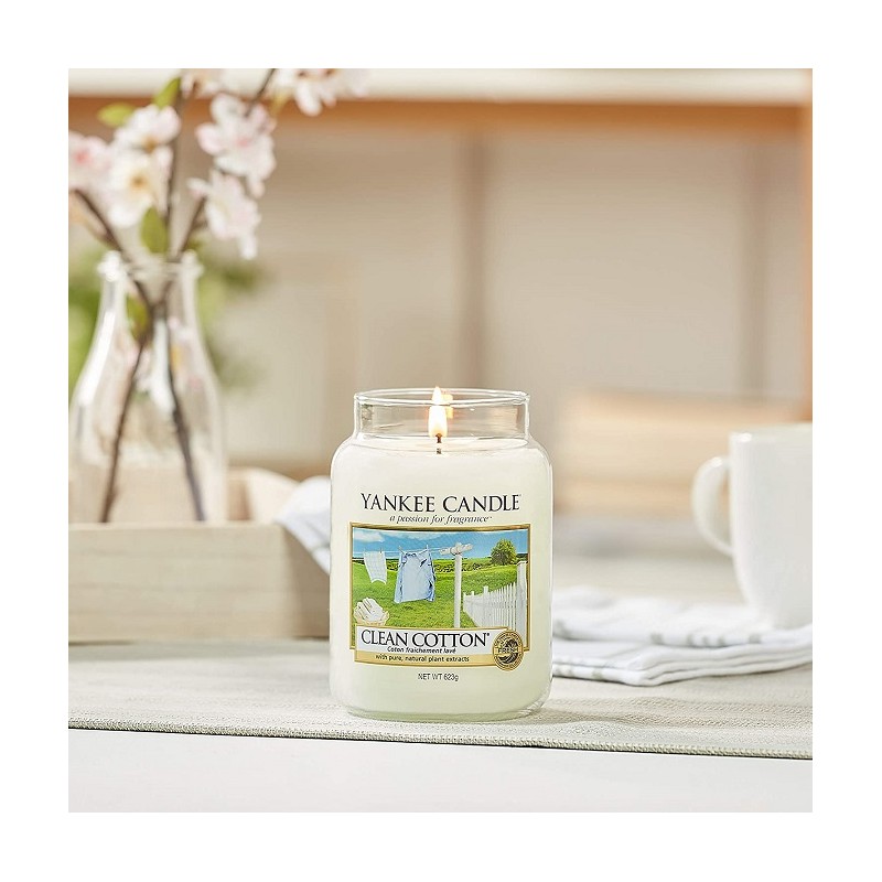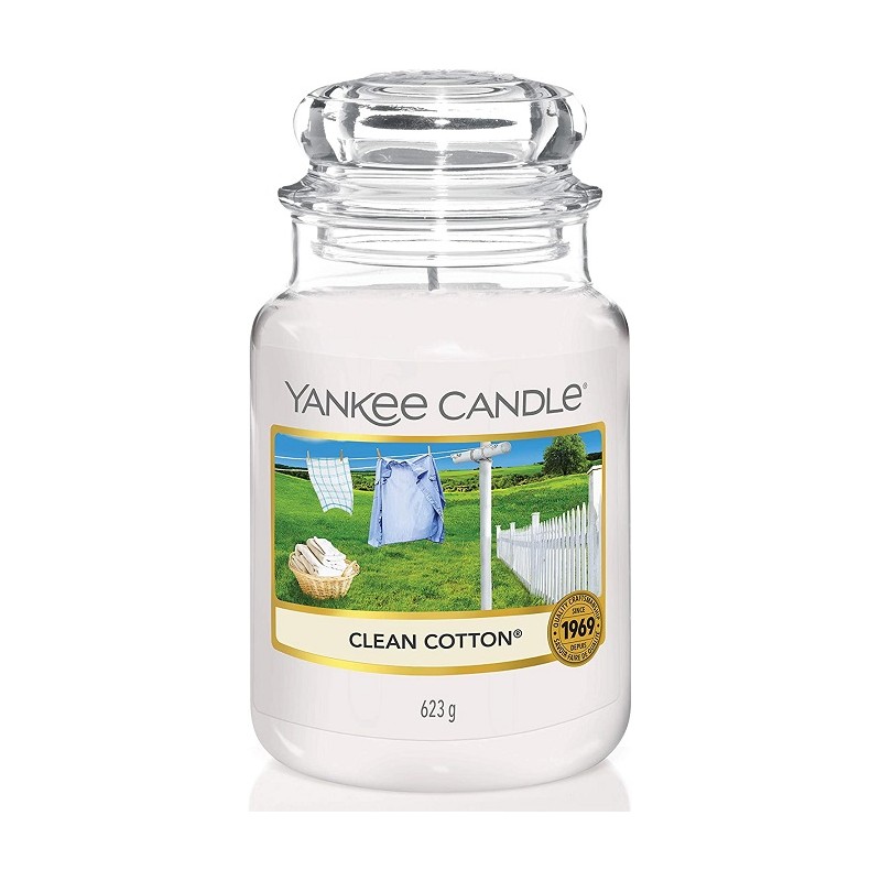 - Candela profumata giara grande clean cotton durata fino a 150 ore