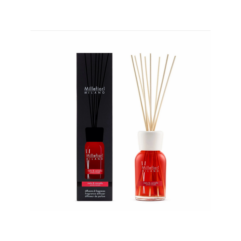 Diffusore Stick Natural Mela e Cannella Millefiori 250ml Diffusori a bastoncino Una soluzione che si integra con stile e discrezione in ogni ambiente regalando una profumazione delicata e duratura.