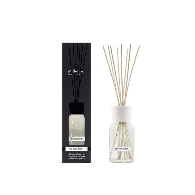I diffusori a stick Millefiori sono fragranze per l’ambiente. White Paper Flowers offre una profumazione delicata e duratura che si integra con eleganza in ogni casa.