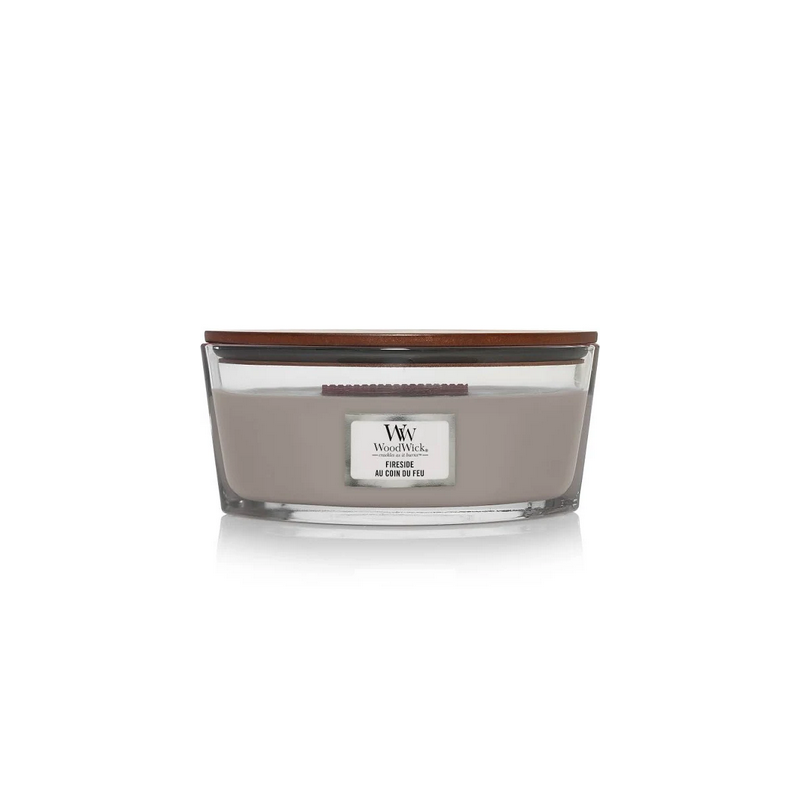 Fireside candela profumata barchetta nasconde il profumo di ambra, vetiver e muschio, che catturano al meglio l'atmosfera di un'accogliente serata davanti al caminetto acceso.