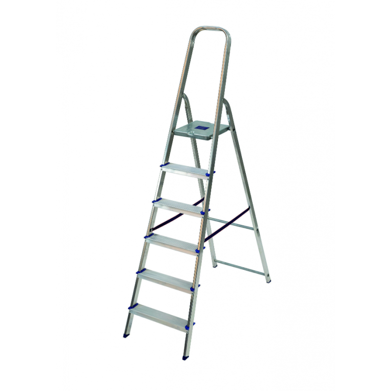 Scala In Alluminio Alfa 6 Gradini Con Piedi Antiscivolo h 188 cm