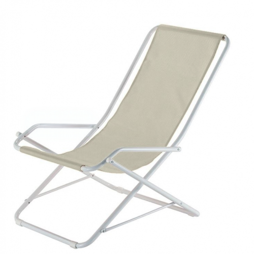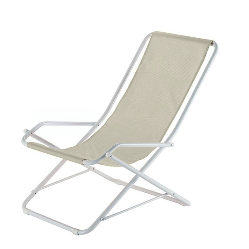 Poltrona Basculante Da Esterno Linea Dondolina Con Telaio In Acciaio Bianco E Telo In Texfil Beige