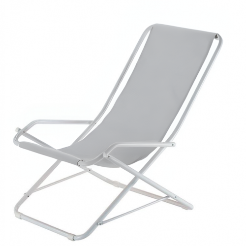 Poltrona Basculante Da Esterno Linea Dondolina Con Telaio In Acciaio Bianco E Telo In Texfil Grigio