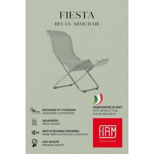 Fiesta è più di una poltrona sdraio, è un vero e proprio status symbol del relax. Un complemento d'arredo che arricchisce con stile il tuo giardino o la tua terrazza, donandogli un tocco di raffinata eleganza.