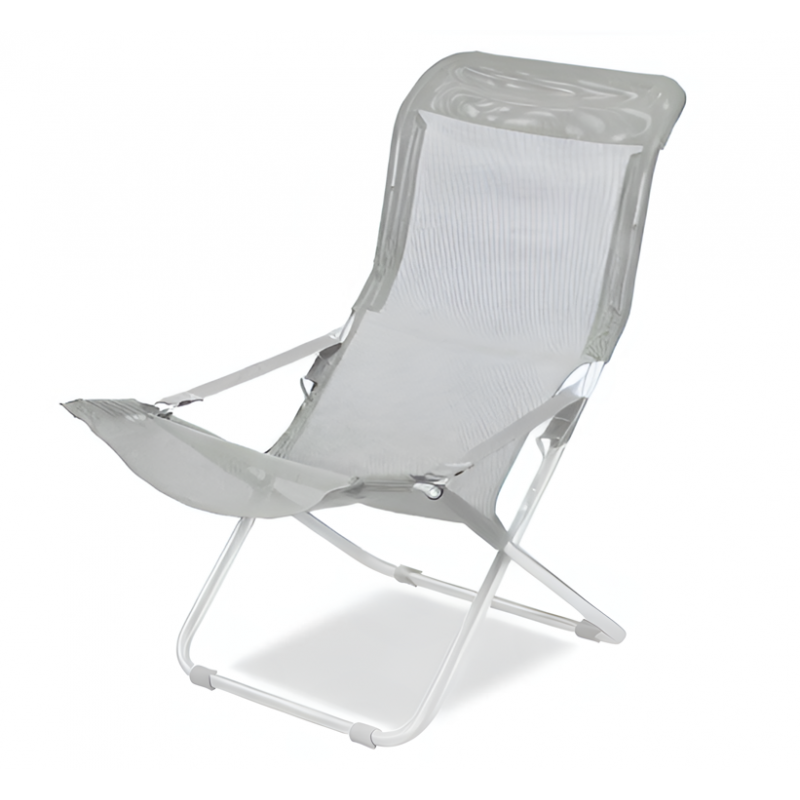 - Poltrona Sdraio Da Esterno Regolabile In 3 Posizioni Linea Fiesta Con Telaio In Acciaio Bianco E Telo In Texfil Grigio
