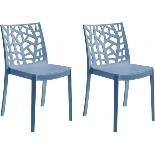 GLOUPIE Set 2 Sedie Matrix In Polipropilene Blu, Dim. 55x47x82 Cm, Peso 4 Kg, Per Interno Ed Esterno, Made In Italy,Impilabili