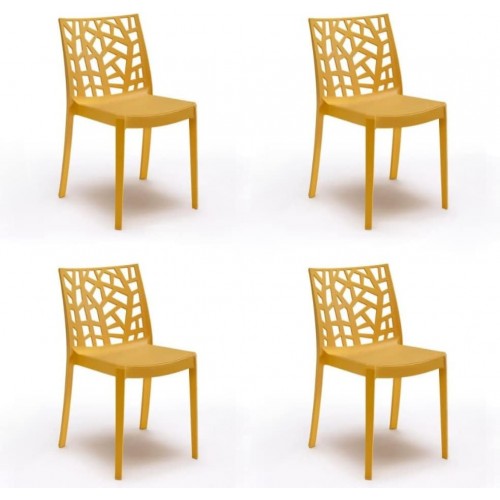 GLOUPIE Set 4 Sedie Matrix In Polipropilene Senape, Dim. 55x47x82 Cm,Peso 4 Kg,Per Interno Ed Esterno,Made In Italy,Impilabili