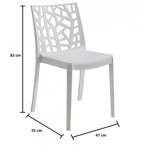 [COMFORT] : Struttura Interamente Realizzata In Polipropilene 100% privo di idrocarburi policiclici aromatici (pah) , progettato per durare nel tempo , Made In Italy. Impilabile. 55 x 47 x 82h Cm. Altezza Seduta 44,5 Cm. Peso 4 Kg