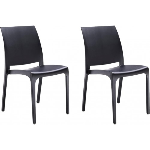 GLOUPIE Set 2 Sedia Volga In Polipropilene Nero,54x46x81Cm,Peso 3,5Kg,Per Interno/Esterno,Made In Italy,Sedie Impilabili