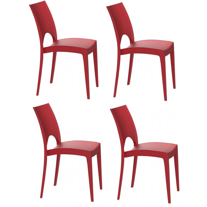 - GLOUPIE Set 4 Sedie Utah In Polipropilene Rosso, Impilabili,51 x 49 x 80 Cm, Per Interno Ed Esterno, Made In Italy