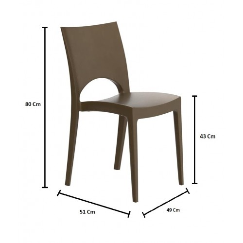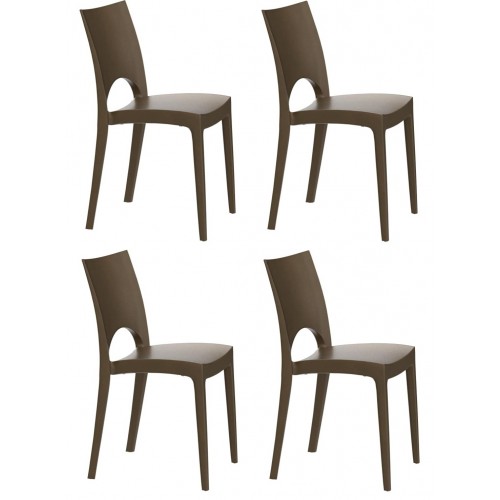 - GLOUPIE Set 4 Sedie Utah In Polipropilene Moka, Impilabili,51 x 49 x 80 Cm, Per Interno Ed Esterno, Made In Italy