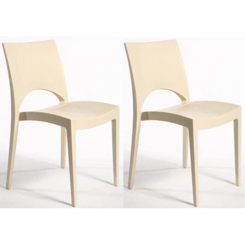 - GLOUPIE Set 2 Sedie Utah In Polipropilene Avorio, Impilabili,51 x 49 x 80 Cm, Per Interno Ed Esterno, Made In Italy