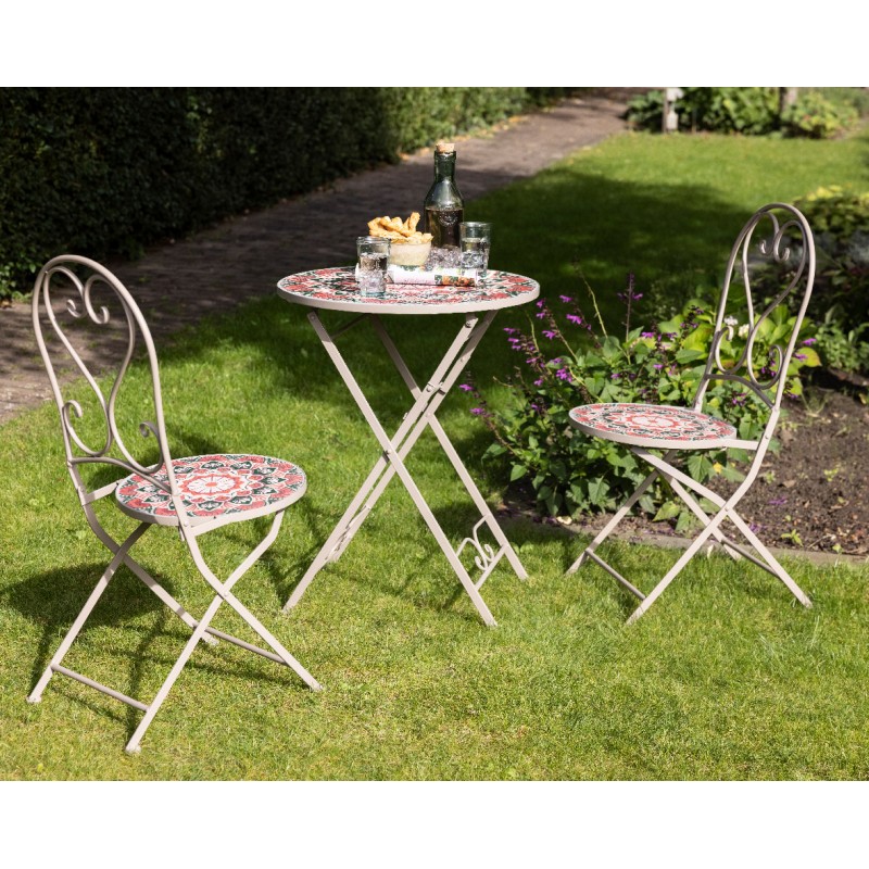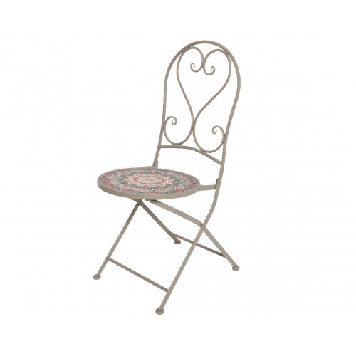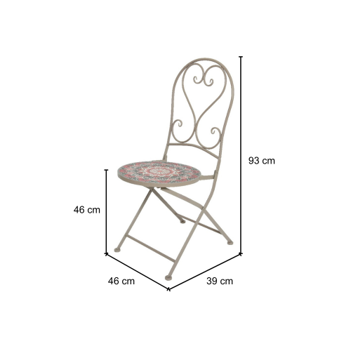GLOUPIE Sedia Pieghevole Da Esterno In Acciaio Verniciato A Polvere Epossidica Beige Con Mosaico Floreale Zante