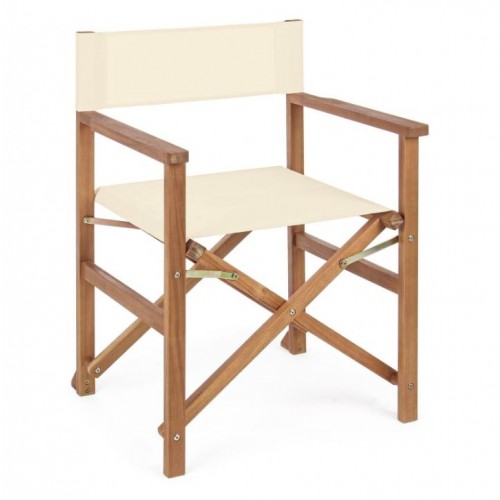 Sedia Da Regista Noemi Ecru Con Struttura In Legno Di Acacia Con Finitura Ad Olio E Seduta In Tessuto Di Poliestere Beige