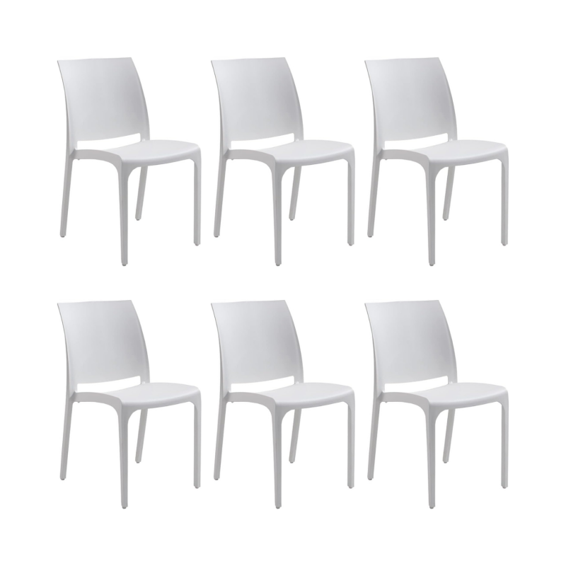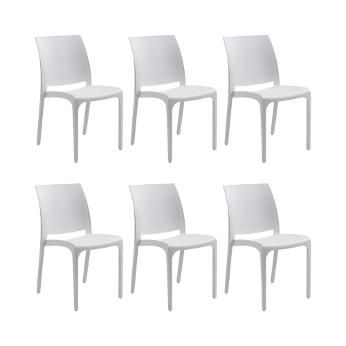 GLOUPIE Set 6 Sedie Volga In Polipropilene Bianco,54x46x81Cm,Peso 3,5Kg,Per Interno/Esterno,Made In Italy,Sedie Impilabili