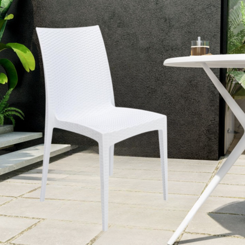 - GLOUPIE Sedia Da Giardino Jersey In Polipropilene Bianco Dall'Effetto Rattan, Impilabile, L 57 x P 50 x H 89 Cm